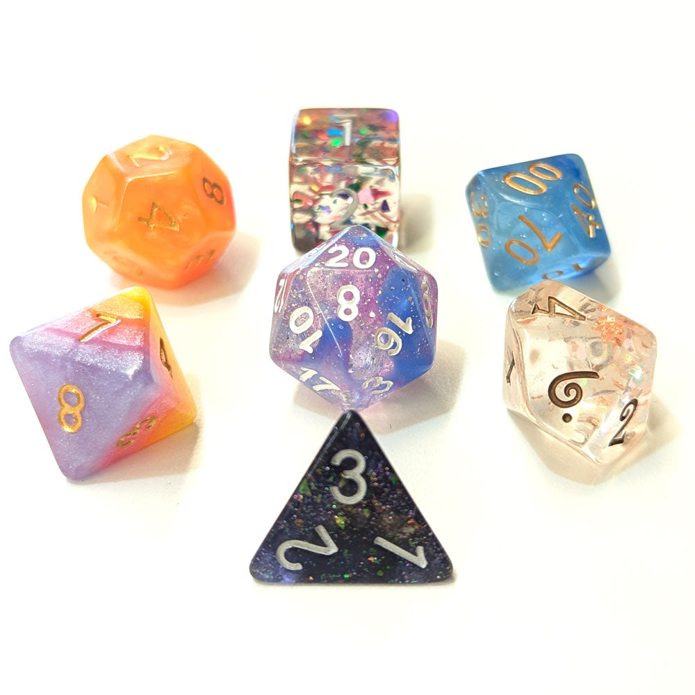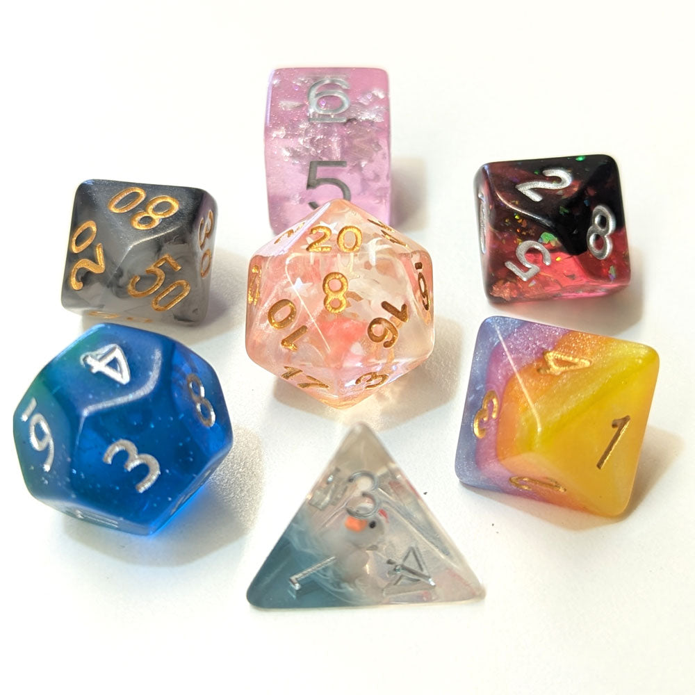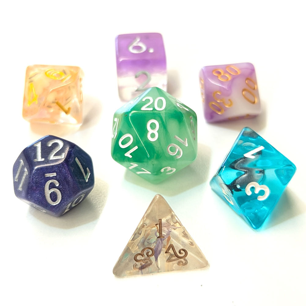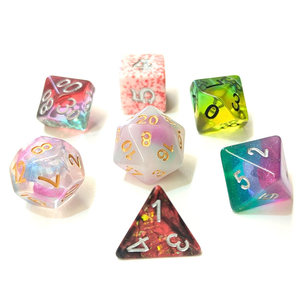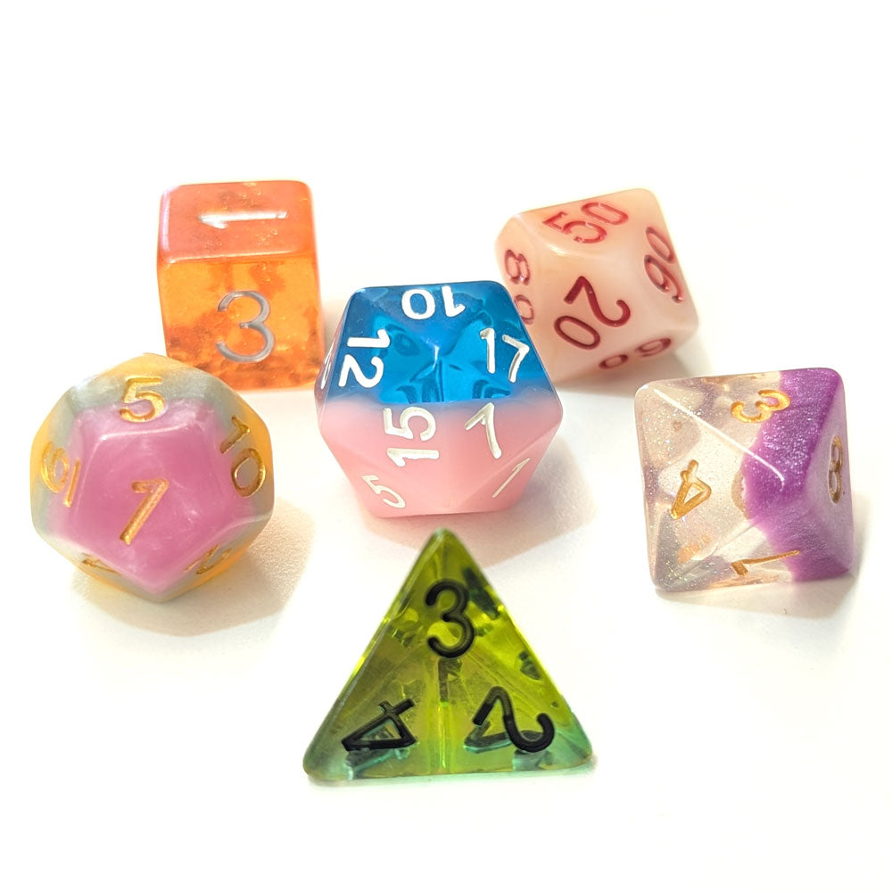 Each pack contains 7 unique dice with colours and styles you won’t know until you open. Plus, the packaging doubles as a handy dice shaker.