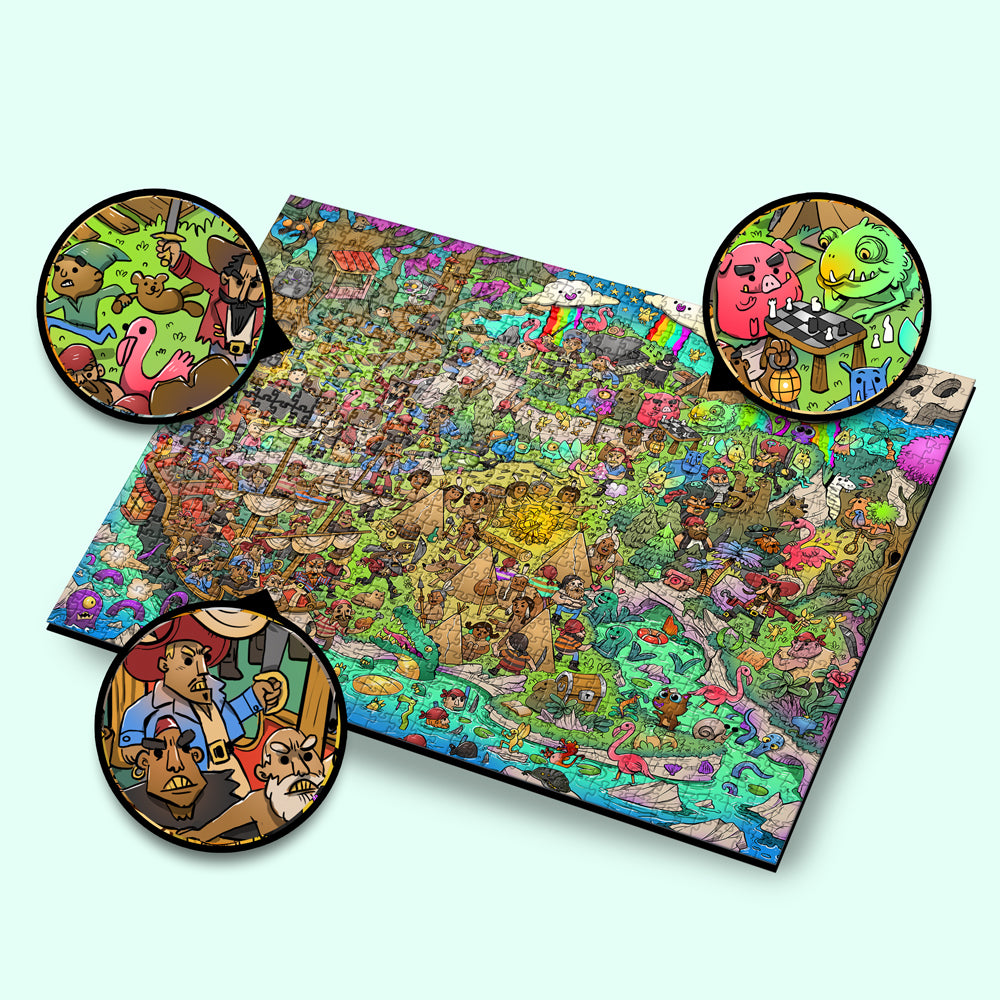 • 🧩 1000 hand-illustrated pieces